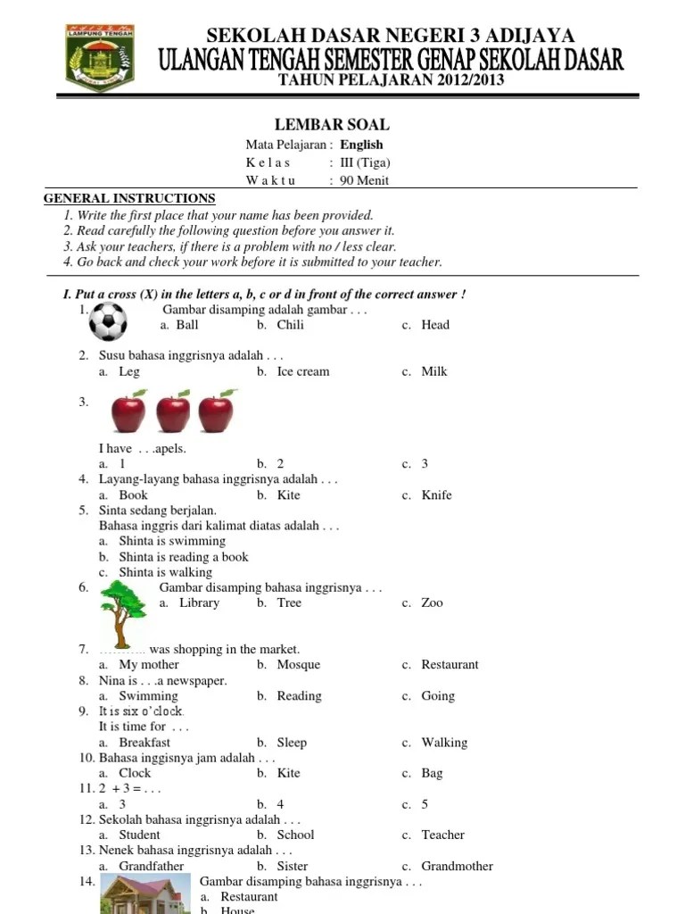 Soal bahasa inggris bergambar untuk kelas 3 sd guru galeri .